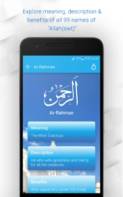 Explora los 99 Nombres de Allah con '99 Names of Allah- Asmaul Husna & Dhikr/Tasbeeh'. Aprende y enseña a tus hijos el significado detallado de cada nombre. Disfruta de la recitación conmovedora (Tilawat) para una experiencia espiritual profunda y educativa.