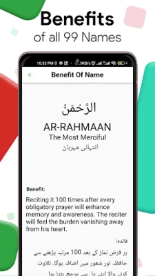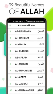 Navegar por la riqueza de Asma ul Husna es excepcionalmente sencillo gracias a la interfaz intuitiva y el diseño atractivo de Beautiful 99 ALLAH Names. Disfrute de gráficos vibrantes y de un estilo de fuente árabe optimizado que garantiza la mejor experiencia de lectura. Diseñada para su comodidad, esta aplicación funciona completamente sin conexión a internet y es compatible con una amplia gama de dispositivos Android, haciendo que el conocimiento de Allah sea accesible en cualquier momento y lugar.