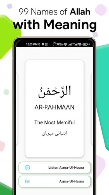Explora los 99 nombres de Allah, presentados en árabe e inglés. Cada nombre incluye su significado completo, ofreciendo una visión profunda. Esta aplicación es una herramienta esencial para comprender los atributos divinos y enriquecer tu conocimiento.