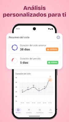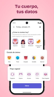 Diseñada para abarcar todas las facetas de tu ciclo, la aplicación permite un monitoreo exhaustivo. Registra y analiza minuciosamente detalles como la presencia de irregularidades, la intensidad de los síntomas premenstruales (SPM), las fechas exactas del flujo, el volumen o la cantidad, así como la duración total y la fuerza de cada menstruación. Obtén una visión completa y detallada que te ayudará a identificar tendencias y a gestionar cualquier inquietud relacionada con tu ciclo.