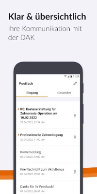Descubra un mundo de servicios simplificados: cargue sin esfuerzo facturas y certificados utilizando la práctica función de escaneo, y complete formularios y solicitudes que ya estarán precargados con su información en este entorno seguro. La aplicación le conecta con ofertas personalizadas para mantener su bienestar, incluyendo chequeos preventivos, beneficios adicionales y programas de coaching en línea. Establezca comunicación directa y segura con DAK a través de múltiples canales como chat, teléfono o correo electrónico, e incluso active la correspondencia digital para recibir notificaciones importantes. Gestione también los asuntos de sus hijos asegurados y optimice su programa de bonificaciones AktivBonus, transformando puntos en atractivas recompensas. Benefíciese de la DAK Online-Videosprechstunde para obtener atención médica cómoda desde su hogar en minutos. Con un diseño intuitivo y accesible, personalice la aplicación, ajustando, por ejemplo, el tamaño de la fuente.