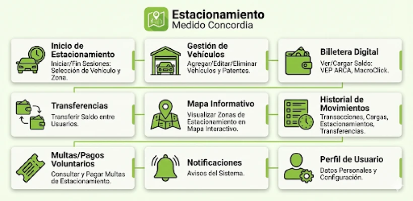 Con Estacionamiento Concordia, estacionar en la ciudad nunca fue tan fácil. Activa el estacionamiento medido desde tu teléfono, olvídate de parquímetros y tickets. Recarga crédito de forma segura, consulta tu saldo y encuentra plazas disponibles en tiempo real con el mapa interactivo.