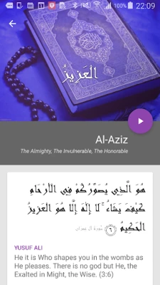 Navegue fácilmente por una colección exhaustiva, donde un simple toque en cualquier nombre revelará una descripción pormenorizada. Lo más destacado es la inclusión de referencias directas del Sagrado Corán, permitiéndole contextualizar cada atributo dentro de las escrituras divinas. Además, para asegurar una recitación precisa y respetuosa, cada entrada incorpora una guía de audio clara que le asistirá en la pronunciación correcta, facilitando así un aprendizaje auténtico y fiel.